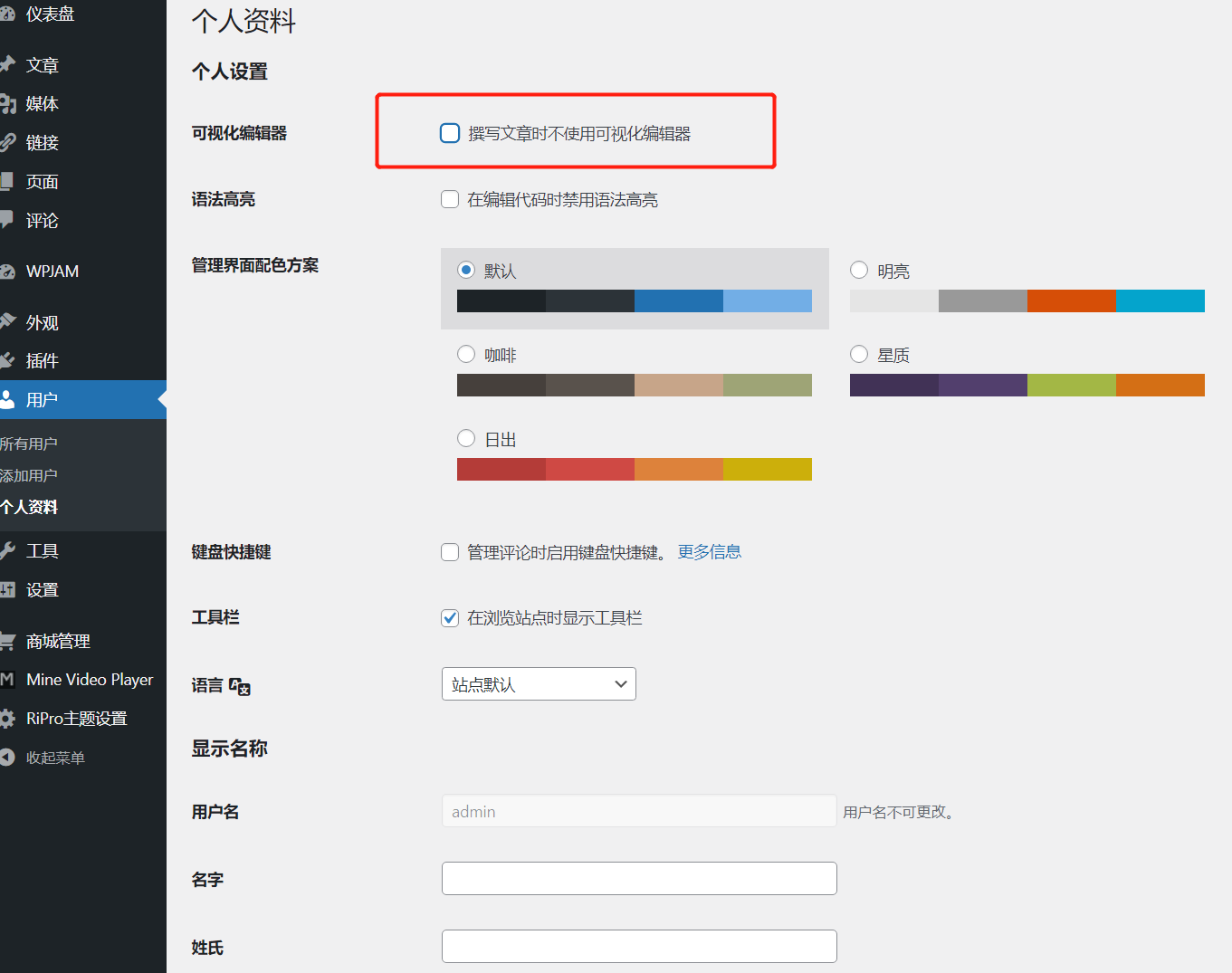 wordpress编辑器界面没有可视化按钮,只有代码文本模式,安装了编辑器插件后,没有效果。